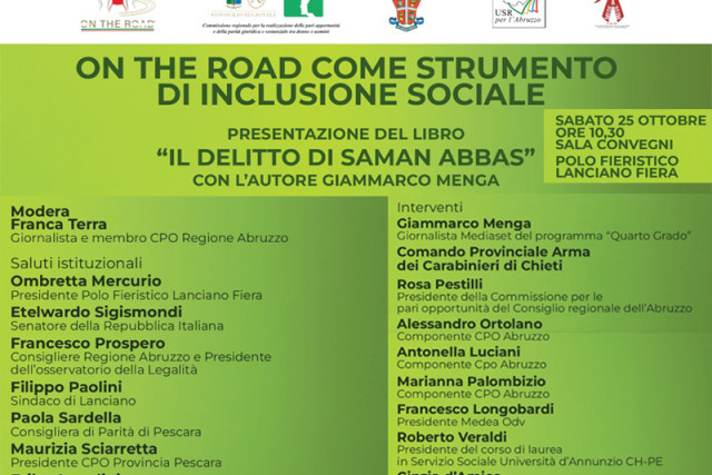 Un appuntamento dedicato al dialogo, alla consapevolezza e all’inclusione sociale è in programma domani, sabato 25 ottobre, alle ore 10:30, nella Sala Convegni del Polo Fieristico Lanciano Fiera, dove si terrà l’incontro “On the Road come strumento di inclusione sociale”, che vedrà al centro la presentazione del libro “Il delitto di Saman Abbas – Il coraggio di essere libere”, con la partecipazione dell’autore Giammarco Menga.